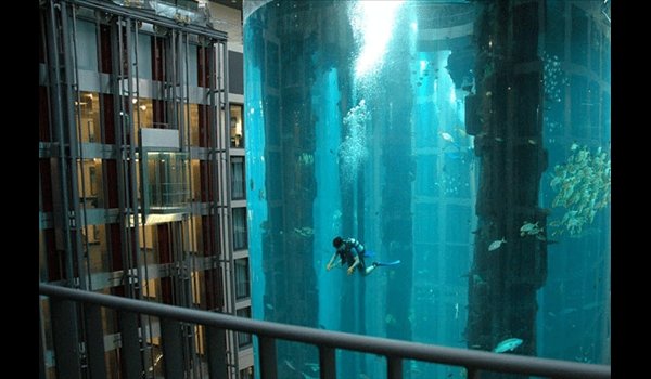 بلندترین آکواریوم دنیا را در هتل آبی ردیسون برلین می توان دید.