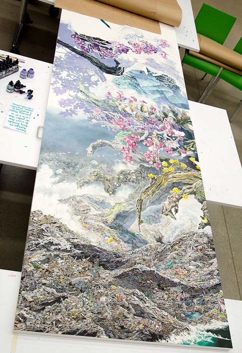 این تابلو، یک درخت زیبا را به تصویر کشیده که از میان لاشه ها، زباله ها و خرابه ها رشد کرده و امواج سونامی آن را احاطه کرده اند. اما این فقط ظاهر و کُلیت اثر است و وقتی با دقت به آن نگاه کنید، جزئیات فراوانی در تمامی بخش های این تصویر وجود دارند که بسیار ماهرانه و زیبا در کنار هم جای گرفته و نمائی خارق العاده به این نقاشی بخشیده اند.