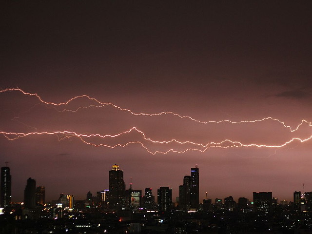 رعد و برق در شهر بانکوک تایلند