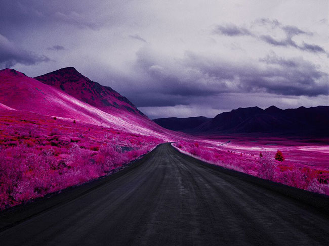 جاده ای زیبا در پارک ” تومپسدون” در منطقه “یوکون” کانادا