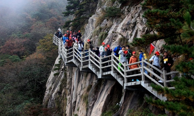 بازدید توریست ها از کوه هوآنگ شان در چین