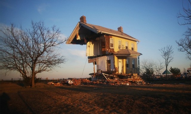نصف شدن یک خانه در اثر توفان در نیوجرسی آمریکا