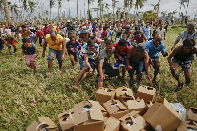توزیع مایحتاج میان توفان زدگان فیلیپین