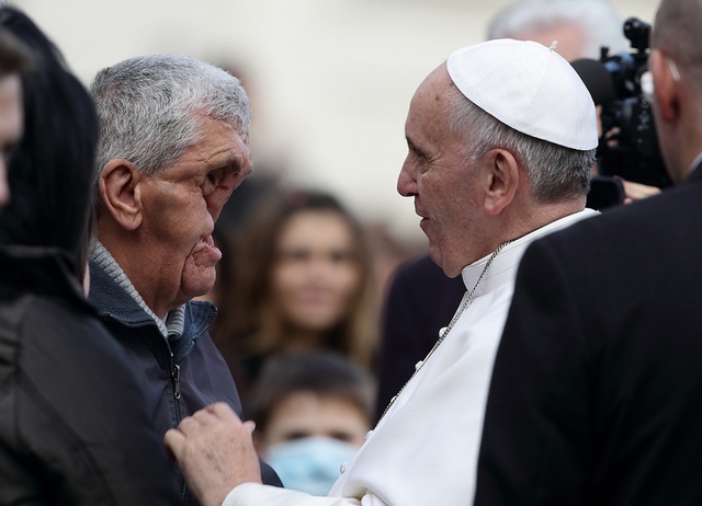 گفت و گوی پاپ با مردی که صورتش در اثر تصادف از بین رفته است (واتیکان)