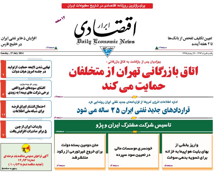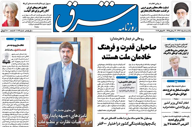 کد خبر : 103219 تاریخ انتشار : یکشنبه ۵ مرداد ۱۳۹۳ - ۹:۳۹ تیتر روزنامه های امروز یکشنبه 5 مرداد ۱۳۹۳ تیتر روزنامه های امروز یکشنبه 5 مرداد ۱۳۹۳ به این پست امتیاز دهید دسته بندی : اخبار روز ، مجله خبری