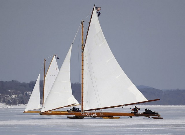 مسابقات قایق های یخ نورد در رودخانه یخ زده هودسون نیویورک