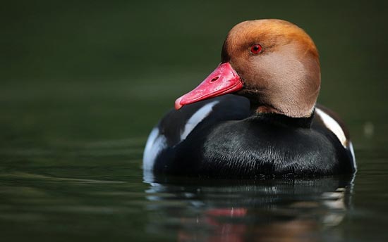 اردک سر حنایی در حال دوش آفتاب بهاری در دریاچه پارک بترسی لندن