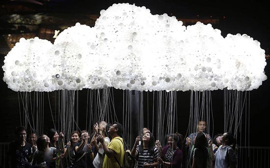 اثر هنری بنام “ابر” در فستیوال نور در خلیج مارینا در سنگاپور