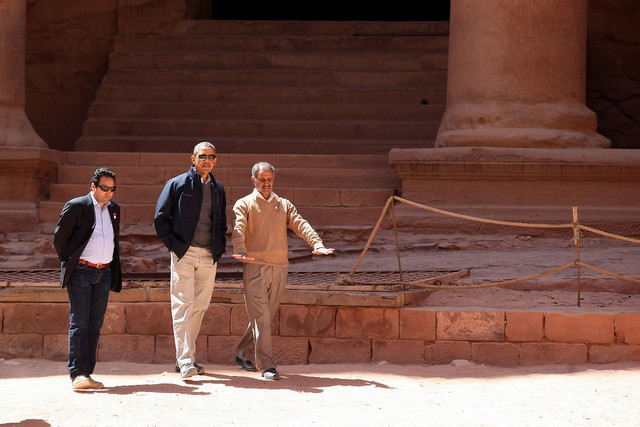 عکسی تازه منتشر شده از بازدید اوباما از شهر تاریخی پترا در شهر امان اردن