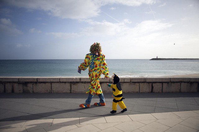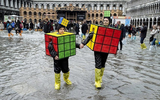 یک مادر و پسر در آخرین روز کارناوال سالانه در ونیز ایتالیا