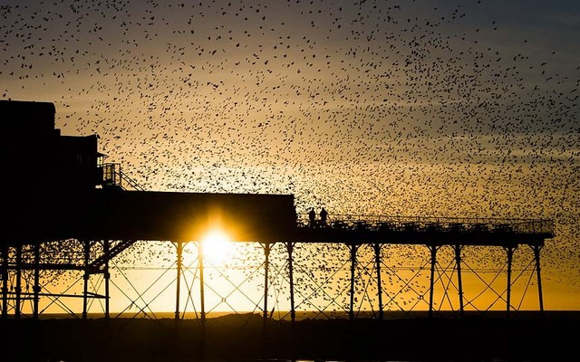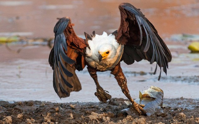 پلیکان بالای سر یک قره قازی که برای ناهار ماهی گرفته / لانگ بیچ کالیفرنیا
