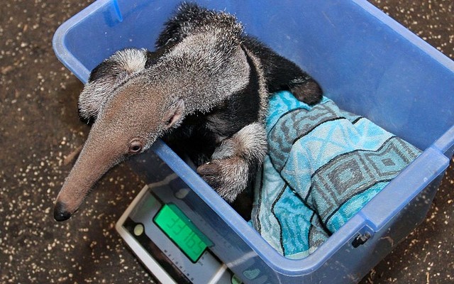 وزن کشی یک مورچه خوار دو ماهه در باغ وحش جمهوری چک