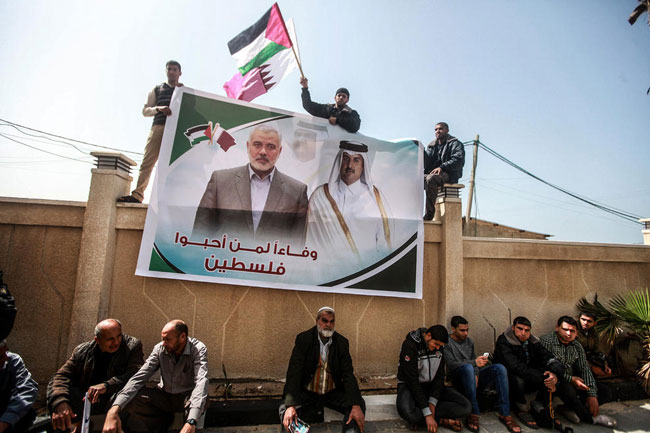 تجمع فلسطینی ها در مقابل کنسولگری قطر در غزه برای ادامه حمایت دولت دوحه از جنبش حماس و دولت غزه