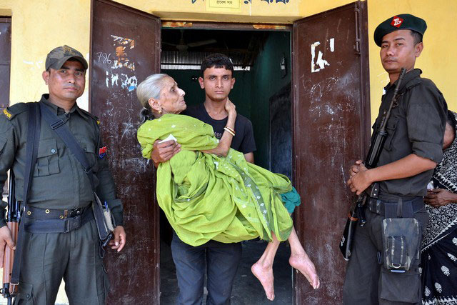 پیرزن هندی پس از رای دادن در یک مرکز رای گیری در شهر آگارتالا