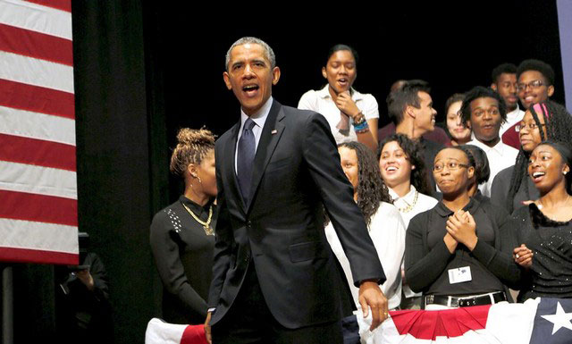 بازدید اوباما از یک دبیرستان در مریلند آمریکا