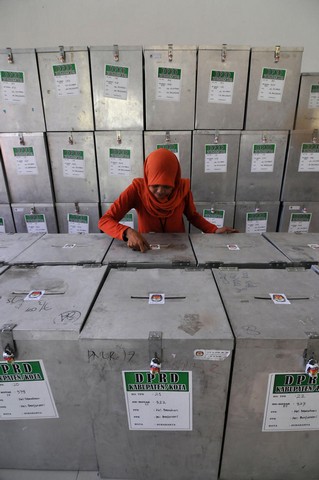 آماده کردن صندوق های آرا انتخابات مجلس اندونزی در شهر سولو