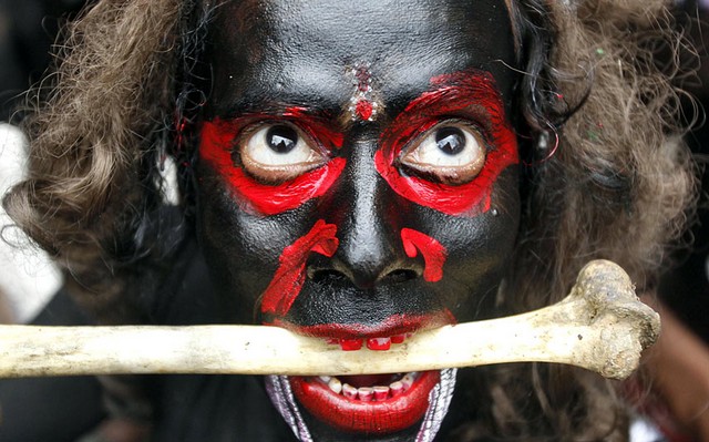 یک هندو در نقش شیطان در یک فستیوال آیینی در الله آباد هند