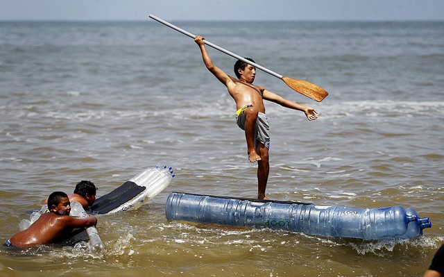 تخته های قایقی ساخته شده از بطری آب (ساحل شهر لیما در پرو)