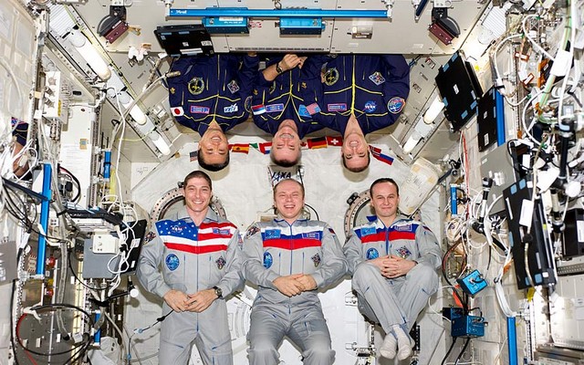 عکس یادگاری فضا نوردان آمریکایی، روس و ژاپنی در ایستگاه فضایی بین المللی