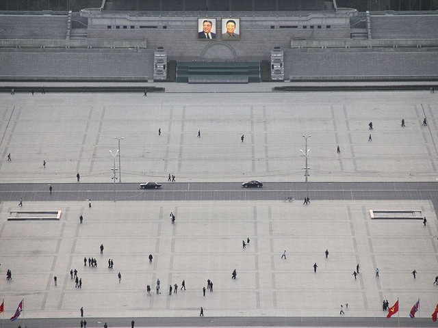 نمایی از بزرگ ترین میدان کشور کره شمالی (میدان کیم ایل سونگ در شهر پیونگ یانگ)