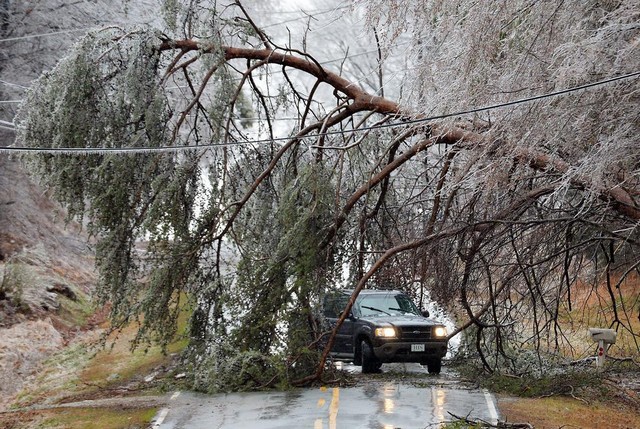 شکستن درختان در اثر توفان زمستانی در منطقه دورهام ایالت کارولینای شمالی آمریکا