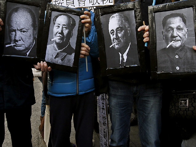 استفاده از عکس رهبران سیگاری سابق جهان در هنگ کنگ برای اعتراض به قانون جدید افزایش مالیات بر دخانیات