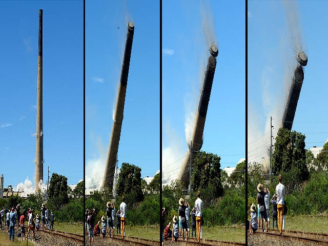 تخریب یک دودکش 200 متری هفت هزار تنی در استرالیا