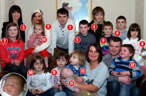 پر جمعیت ترین خانواده بریتانیایی که هر سال به تعدادش اضافه می شود سوژه خبری رسانه های انگلیس شده و مادر ۳۷ ساله که به تازگی شانزدهمین فرزندش را به دنیا آورده گفته است با این وجود همچنان به فرزندان بیشتری فکر میکند!!