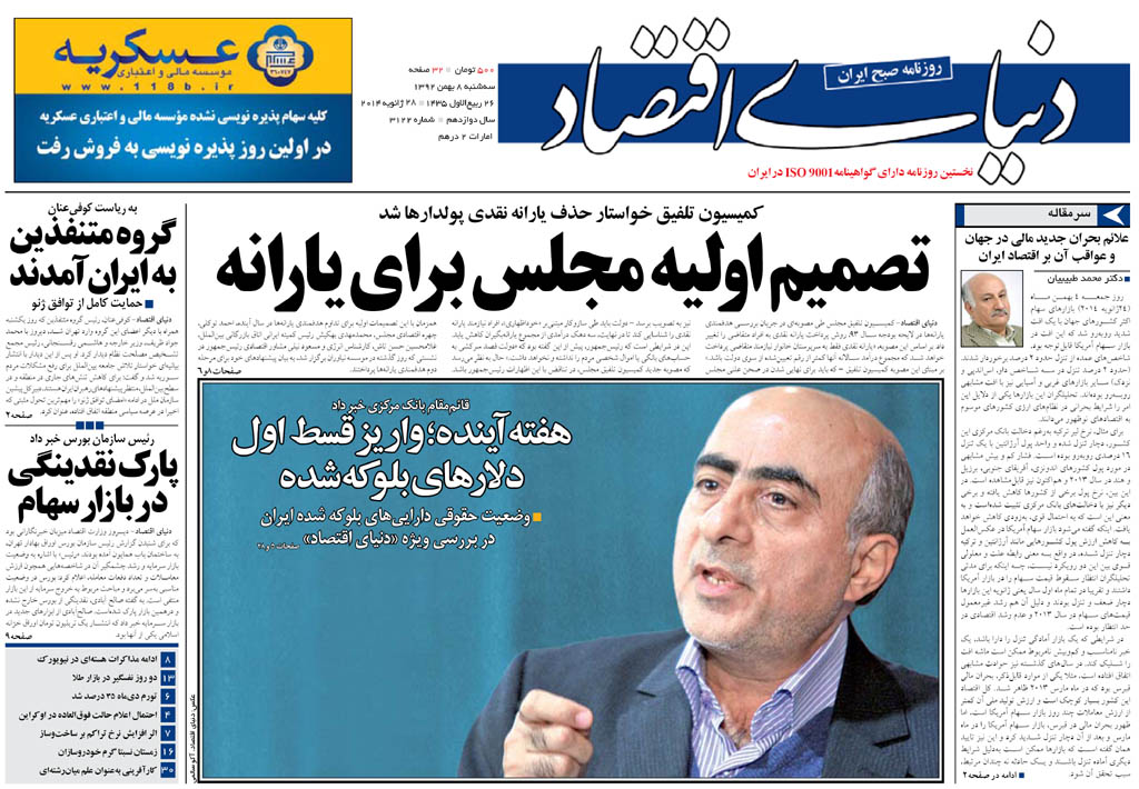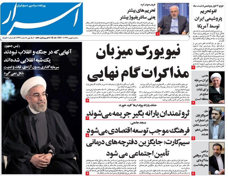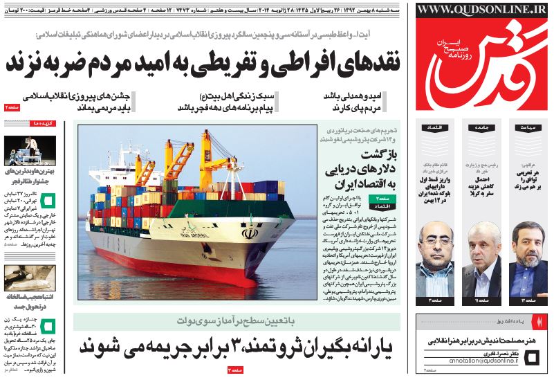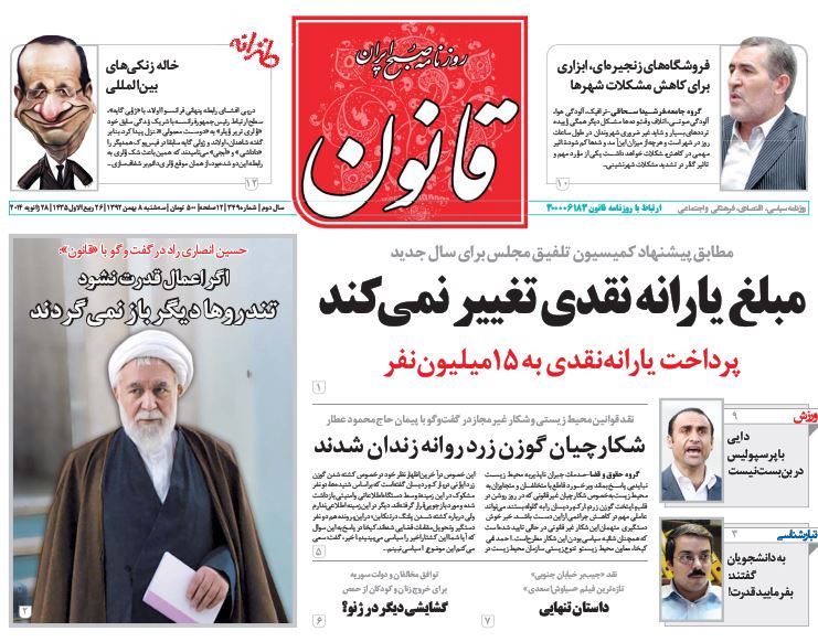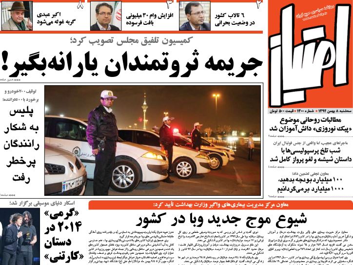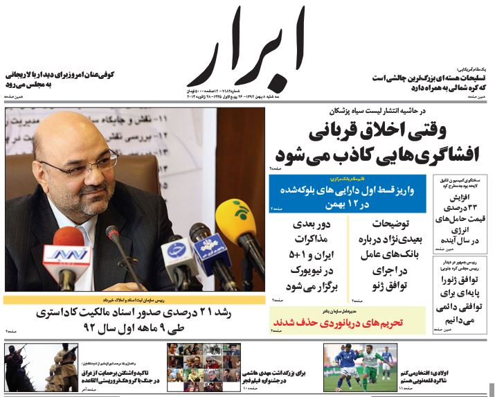 کد خبر : 66504 تاریخ انتشار : سه شنبه ۸ بهمن ۱۳۹۲ - ۹:۴۲ صفحه اول روزنامههای امروز سه شنبه 8 بهمن ۱۳۹۲ به این پست امتیاز دهید دسته بندی : اخبار روز ، مجله خبری