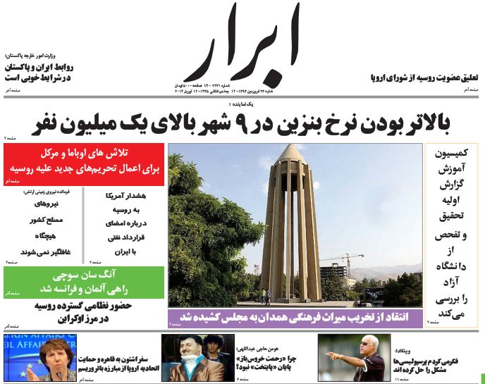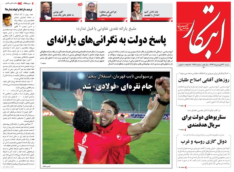 کد خبر : 84847 تاریخ انتشار : شنبه ۲۳ فروردین ۱۳۹۳ - ۸:۰۰ صفحه اول روزنامههای امروز شنبه 23 فروردین ۱۳۹۳ به این پست امتیاز دهید دسته بندی : اخبار روز ، مجله خبری