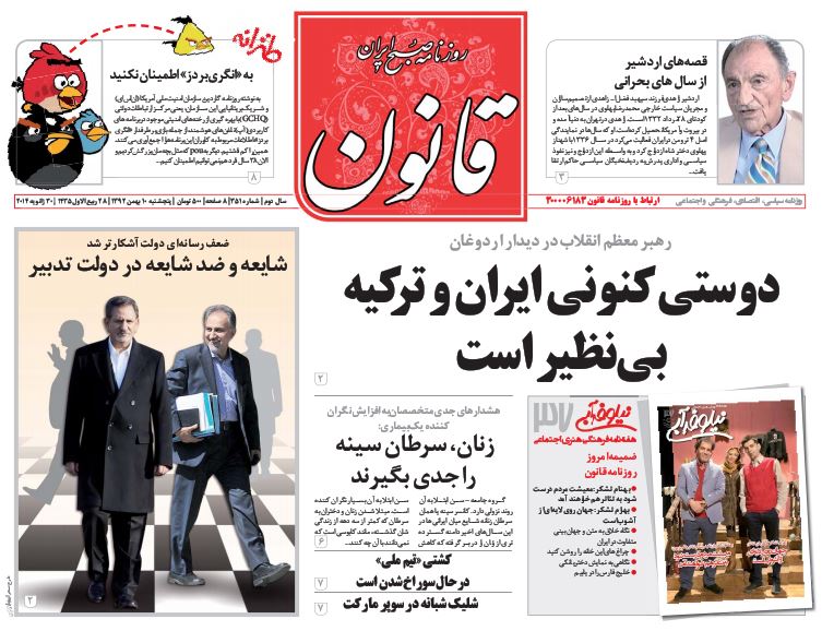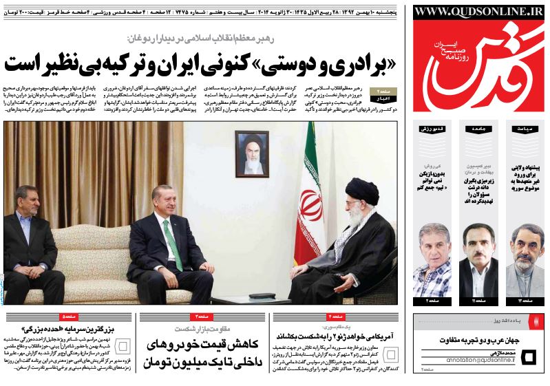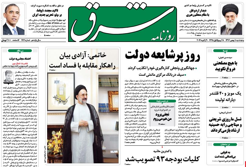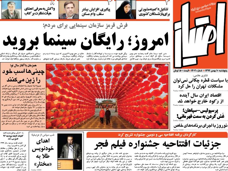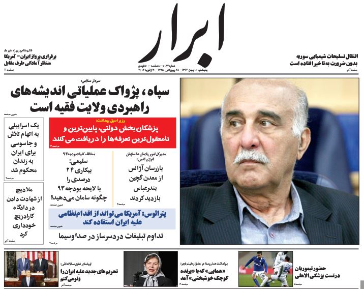 کد خبر : 66925 تاریخ انتشار : پنجشنبه ۱۰ بهمن ۱۳۹۲ - ۱۰:۲۹ صفحه اول روزنامههای امروز پنجشنبه ۱۰ بهمن ۱۳۹۲ به این پست امتیاز دهید دسته بندی : اخبار روز ، مجله خبری