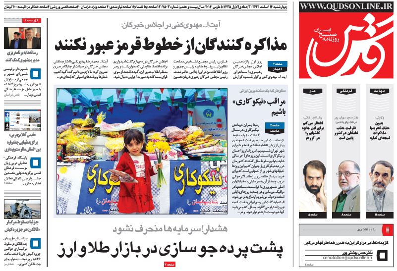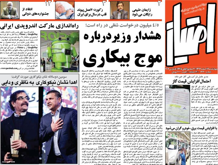 کد خبر : 77807 تاریخ انتشار : چهارشنبه ۱۴ اسفند ۱۳۹۲ - ۷:۲۵ صفحه اول روزنامههای امروز چهارشنبه 14 اسفند ۱۳۹۲ به این پست امتیاز دهید دسته بندی : اخبار روز ، مجله خبری