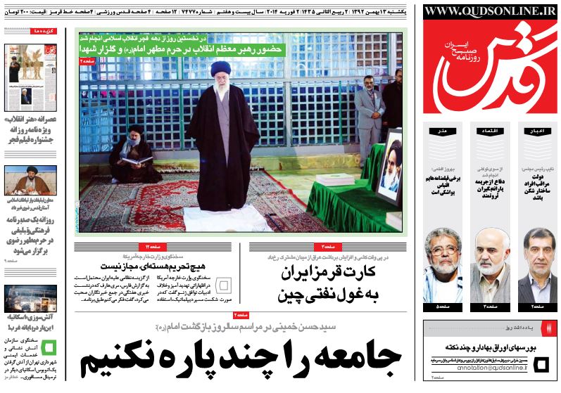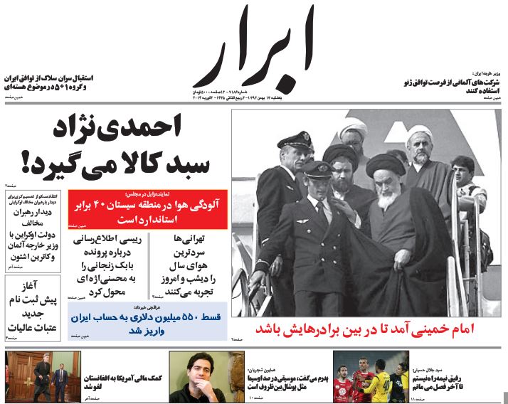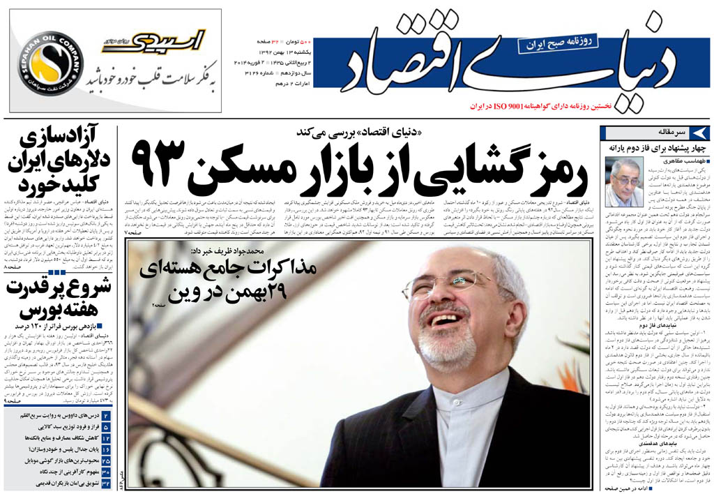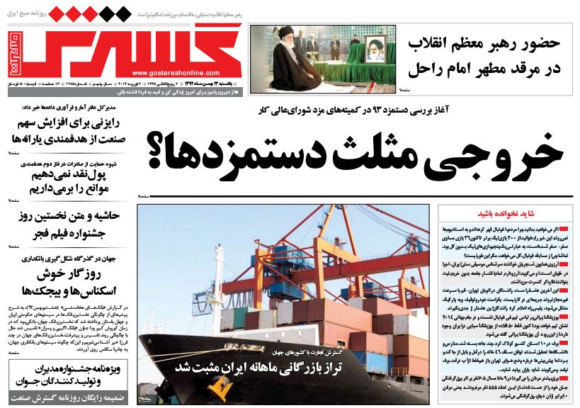 کد خبر : 67415 تاریخ انتشار : یکشنبه ۱۳ بهمن ۱۳۹۲ - ۹:۴۴ صفحه اول روزنامههای امروز یکشنبه 13 بهمن ۱۳۹۲ به این پست امتیاز دهید دسته بندی : اخبار روز ، مجله خبری