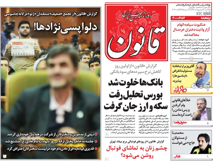 کد خبر : 88516 تاریخ انتشار : یکشنبه ۱۴ اردیبهشت ۱۳۹۳ - ۹:۱۱ صفحه اول روزنامههای امروز یکشنبه 14 اردیبهشت ۱۳۹۳ صفحه اول روزنامههای امروز یکشنبه 14 اردیبهشت ۱۳۹۳ به این پست امتیاز دهید دسته بندی : اخبار روز ، مجله خبری