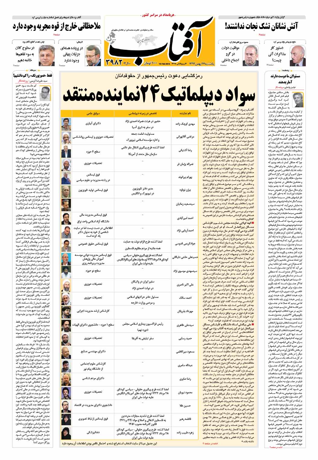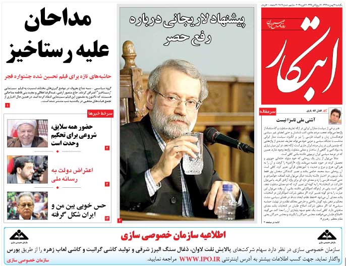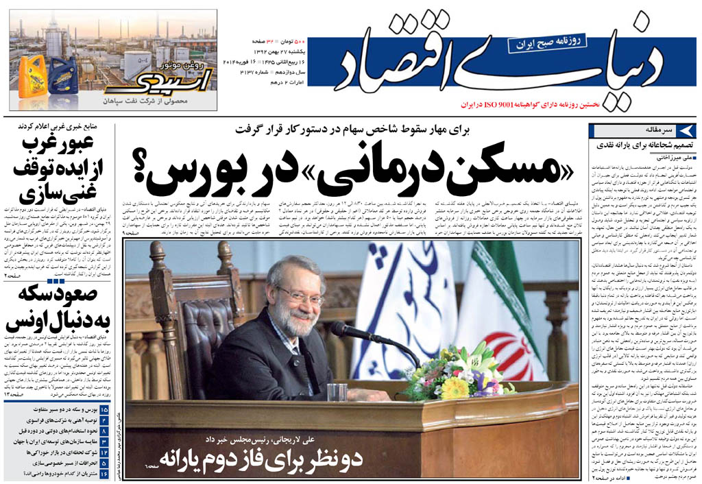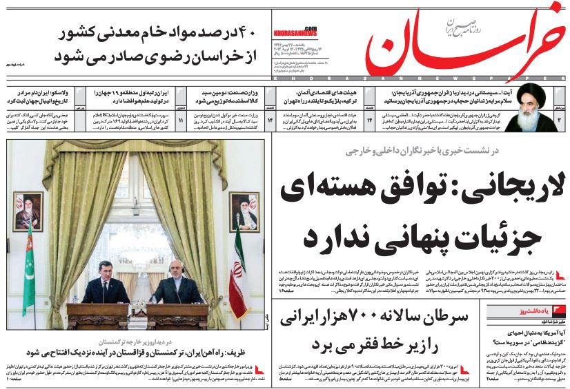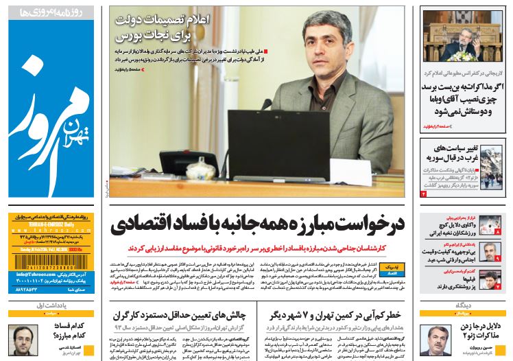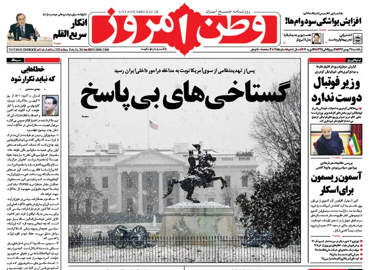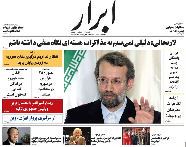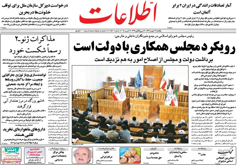 کد خبر : 71984 تاریخ انتشار : یکشنبه ۲۷ بهمن ۱۳۹۲ - ۸:۰۶ صفحه اول روزنامههای امروز یکشنبه 27 بهمن ۱۳۹۲ به این پست امتیاز دهید دسته بندی : اخبار روز ، مجله خبری