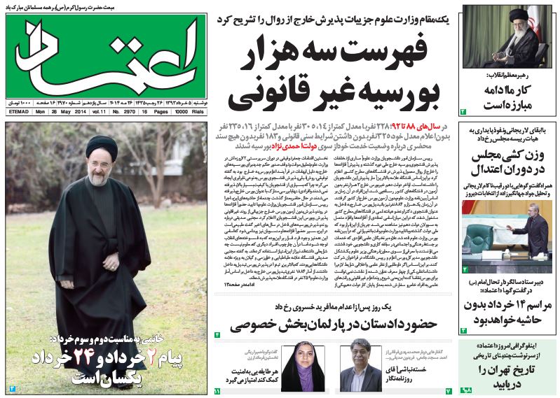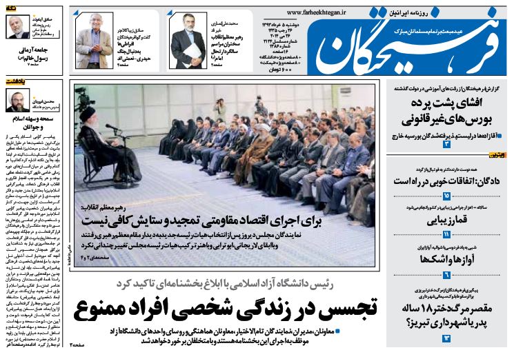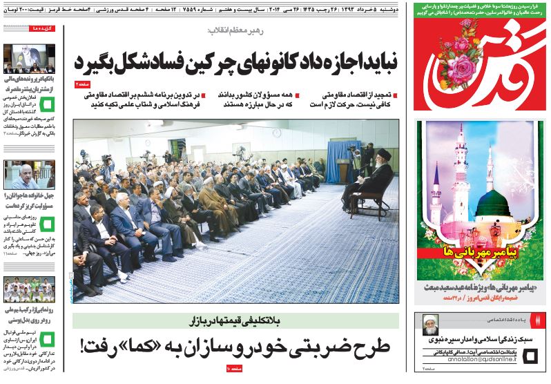 کد خبر : 92301 تاریخ انتشار : دوشنبه ۵ خرداد ۱۳۹۳ - ۸:۲۶ صفحه اول روزنامه های امروز دوشنبه 5 خرداد ۱۳۹۳ صفحه اول روزنامه های امروز دوشنبه 5 خرداد ۱۳۹۳ به این پست امتیاز دهید دسته بندی : اخبار روز ، مجله خبری