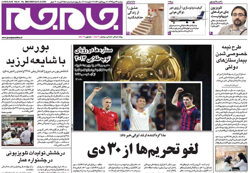 کد خبر : 63405 تاریخ انتشار : دوشنبه ۲۳ دی ۱۳۹۲ - ۹:۳۶ عناوین مهم روزنامههای امروز دوشنبه 23 دی ۱۳۹۲ به این پست امتیاز دهید دسته بندی : اخبار روز ، مجله خبری