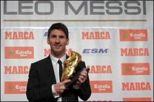 کفش طلایی، لیونل مسی بازیکن آرژانتینی تیم بارسلونا برای دومین بار جایزه بهترین گلزن اروپا را از آن خود کرد. این جایزه عصر روز دوشنبه در آیینی در شهر بارسلونا اسپانیا و با حضور تعدادی از ستارگان فوتبال به مسی تقدیم شد.