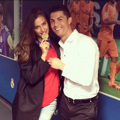 مدال کریس رونالدو در گردن نامزدش رئال مادرید شب گذشته توانست با برتری قاطع خود برابر اتلتیکو برای دهمین بار عنوان قهرمانی اروپا را از آن خود کند. عنوانی که کریستیانو رونالدو بهترین بازیکن سال جهان در کسب آن نقش زیادی داشت.در این عکس کریس رونالدو مدال قهرمانی خود را در گردن نامزد روس خود ایرینا شایک انداخته است.