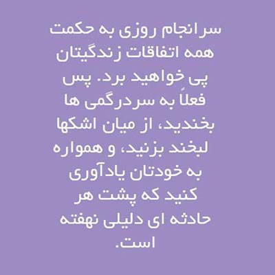 کد خبر : 76151 تاریخ انتشار : جمعه ۹ اسفند ۱۳۹۲ - ۲۳:۳۱ جمـلات الـهام بخـش برای زنـدگی به این پست امتیاز دهید دسته بندی : ادبیات و مذهب ، جملات زیبا