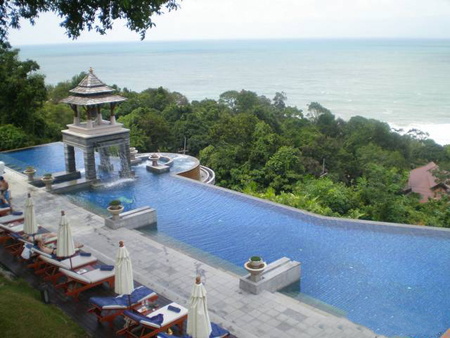 این استخر شگفت انگیز که در جزیره کولانتا (Ko Lanta) در جنوب تایلند بنا شده، بیشتر شبیه یک معبد بودایی ها است.این استخر 50 متر بالاتر از سطح دریا قرار گرفته است و از آب شیرین پر می شود. با شنا کردن در استخر Pimalai Resort می توانید در پایین پای خود از تماشای تصاویر خارق العاده ای از ساحل و دریا لذت ببرید و آرامش بی نظیری را تجربه کنید.غواصی در این استخر با هیجان بسیار زیادی همراه است.