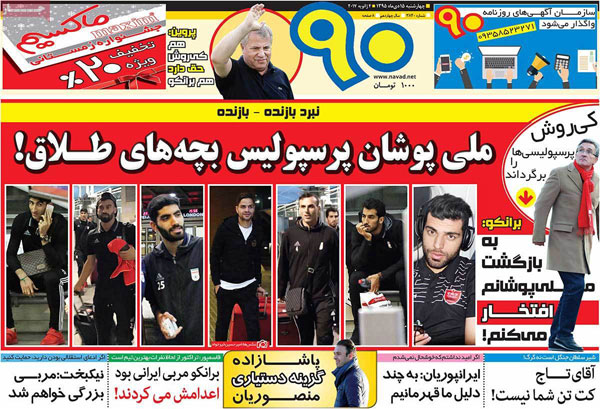 روزنامه های ورزشی چهارشنبه 15 دی