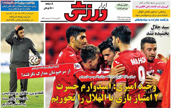 روزنامه های ورزشی پنج شنبه 5 اسفند 1395
