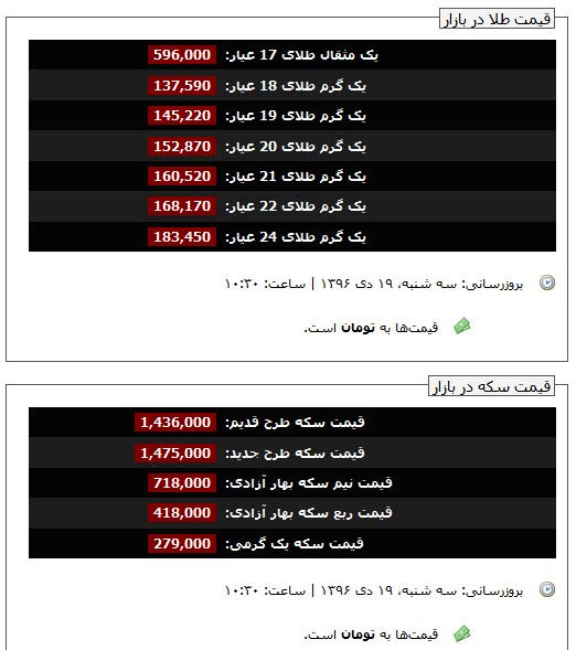 کد خبر : 253706 تاریخ انتشار : سه شنبه ۱۹ دی ۱۳۹۶ - ۷:۳۷ قیمت طلا و سکه امروز سه شنبه 19 دی قیمت طلا و سکه امروز سه شنبه 19 دی به این پست امتیاز دهید دسته بندی : اخبار اقتصادی ، مجله خبری