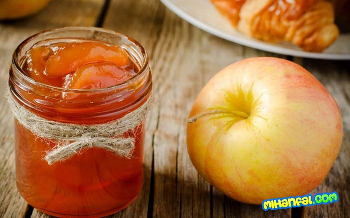 4- سپس سیب ها را داخل شربت ریخته و می گذاریم شربت مربا قوام بیاید، سپس گلاب و آب لیمو را اضافه می کنیم و بعد از چند جوش مربا را از روی آتش بر می داریم.